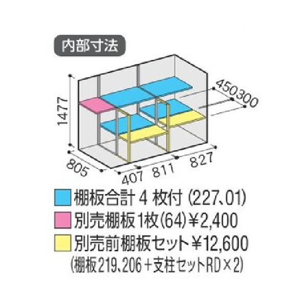棚板(227),(01)計4枚、転倒防止金具、アンカープレート付 |